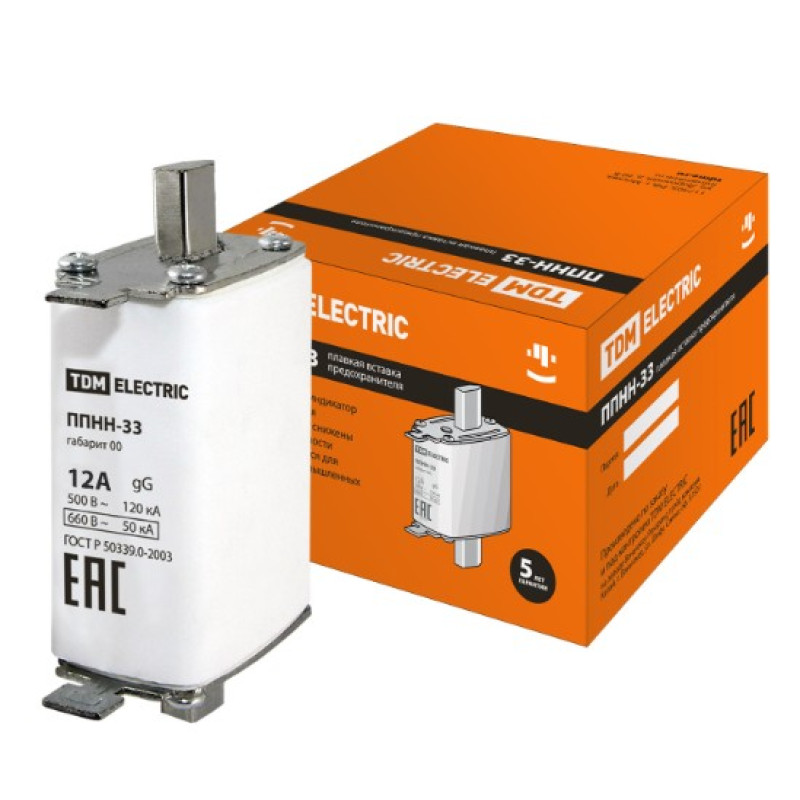 Плавкая вставка предохранителя TDM ППНН-33 габ.00, 12А