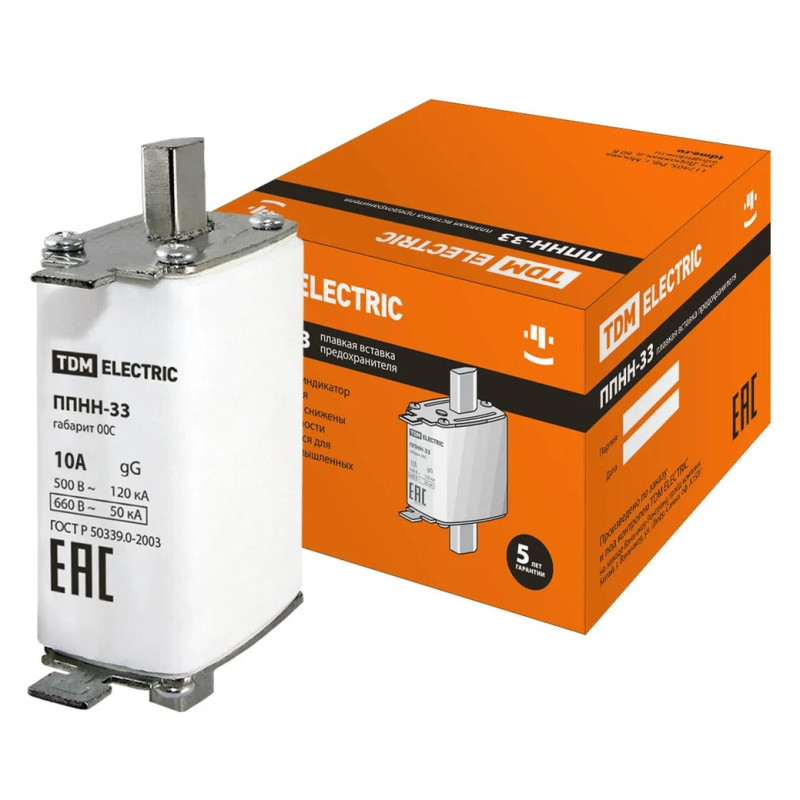 Плавкая вставка предохранителя TDM ППНН-33 габ.00C, 10А