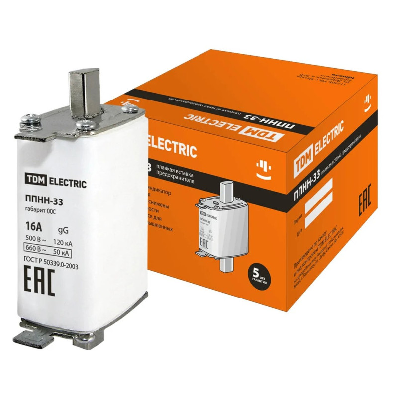Плавкая вставка предохранителя TDM ППНН-33 габ.00C, 16А