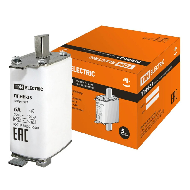 Плавкая вставка предохранителя TDM ППНН-33 габ.00C, 6А
