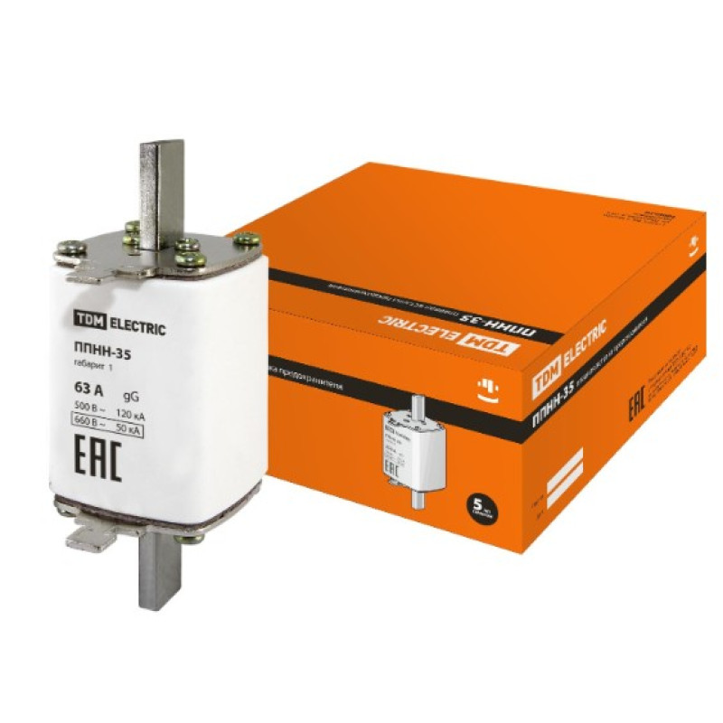 Плавкая вставка предохранителя TDM ППНН-35 габ.1, 63А