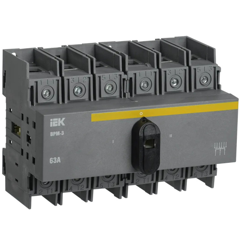 Выключатели-разъединители модульные ВРМ IEK предназначены для коммутации смешанных и индуктивных нагрузок в цепях переменного тока, а также для переключения на резервное питание электрических цепей переменного тока.