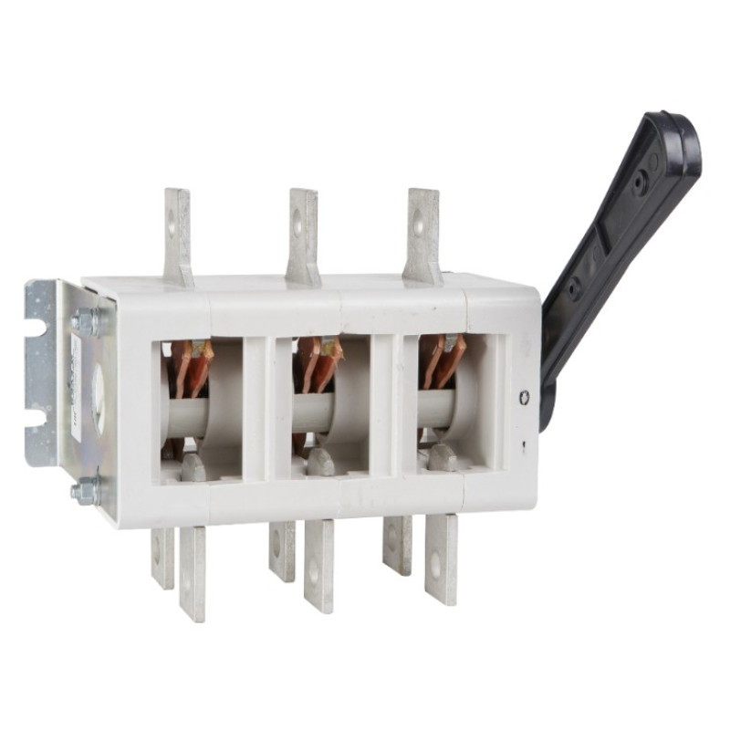 Выключатель-разъединитель 3 полюсный на номинальный ток 630 А, в котором установлена несъемная рукоятка. Выключатели-разъединители ВР32 Ф КЭАЗ с корпусом из фенопласта предназначены для включения, пропускания и отключения переменного тока номинальным напряжением до 660В, постоянного тока номинальным напряжением до 440В в устройства распределения электроэнергии.