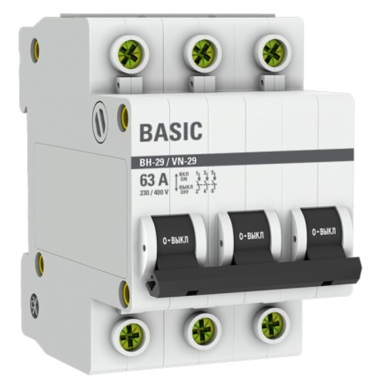 Выключатели нагрузки ВН-29 BASIC предназначены для оперативного управления участками электрических цепей. Выключатели производятся в одно-, двух-, трех- и четырехполюсном исполнении.