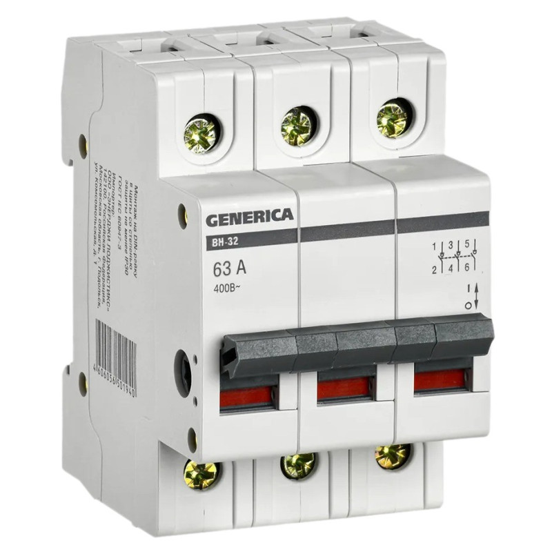 Выключатель нагрузки (мини-рубильник) GENERICA 3п ВН-32 3Р 63А