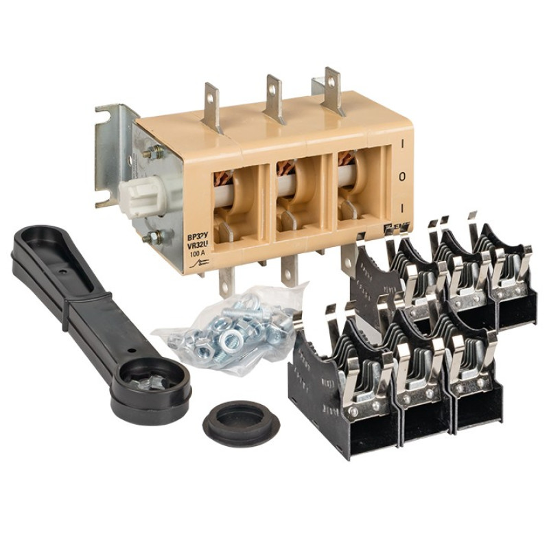 Выключатели-разъединители ВР32У (универсальные) серии MAXima предназначены для ручного включения-отключения цепей переменного тока с номинальным напряжением до 690 В частотой 50 Гц. В конструкции применена трехполюсная контактная система ножевого типа с двойным видимым разрывом цепи. С помощью двойного разрыва цепи, больших растворов контактов и дугогасительных камер обеспечивается эффективное гашение электрической дуги при коммутации нагрузок, что препятствует преждевременному и чрезмерному износу контактов. Конструкция контактных выводов обеспечивает болтовое присоединение шин или проводников, оконцованных кабельными наконечниками. Все рубильники являются универсальными по типу присоединения рукоятки. Конструкция рубильника предусматривает установку рукоятки как справа от корпуса, так и слева. Расположение рукоятки, левое или правое, можно поменять в процессе эксплуатации при необходимости. Расположение плоскости присоединения внешних зажимов контактных выводов перпендикулярно плоскости монтажа. Выпускается несколько исполнений ВР32У: • на одно и на два направления; • с несъемной рукояткой; • со съемной смещенной рукояткой.