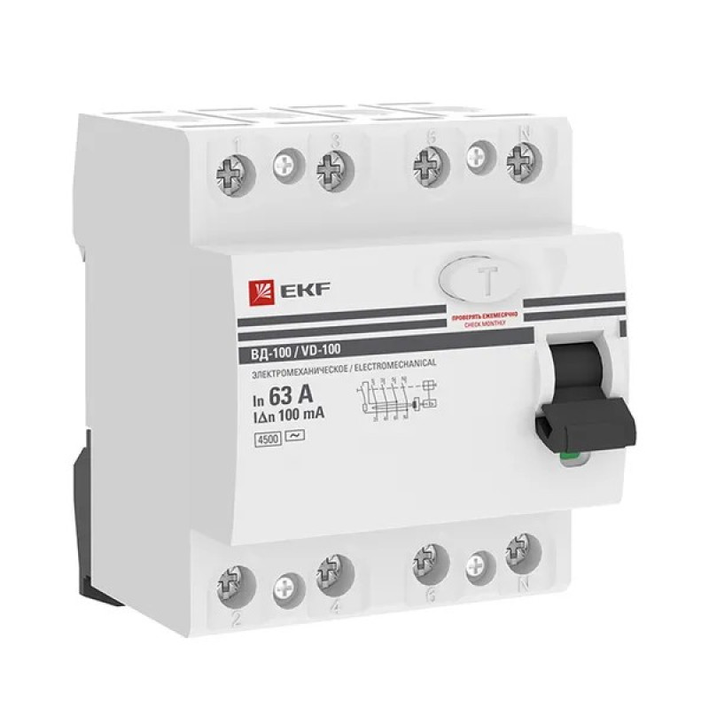 Выключатель дифференциального тока ВДТ ВД‑100 PROXIMA EKF применяется в электрических цепях переменного тока номинальным напряжением 230В/400 В и частотой 50 Гц. Предназначено для защиты людей от поражения электрическим током при случайном прикосновении к открытым проводящим частям электроустановки.