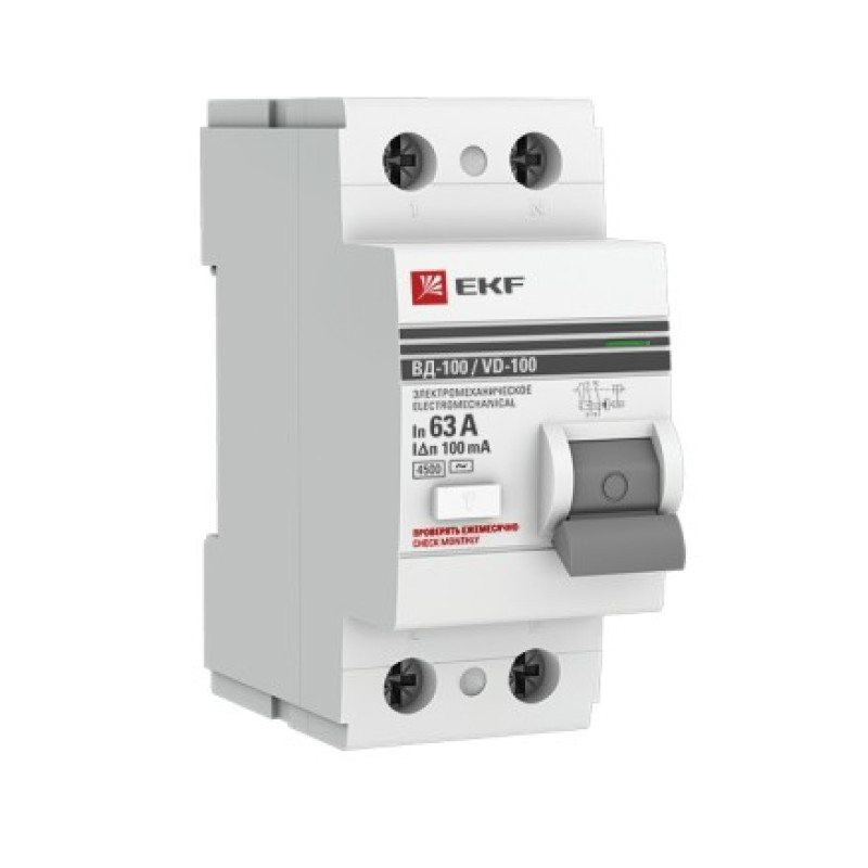 Устройство защитного отключения (УЗО) EKF PROximaм 2P 63А 100мА
