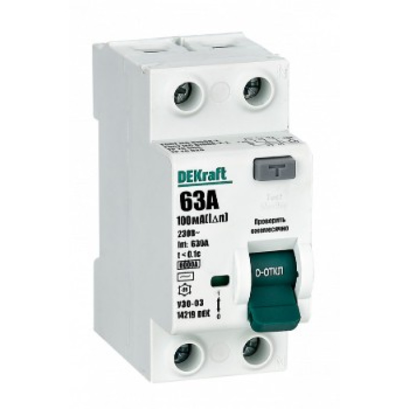 Выключатель дифференциального тока Dekraft УЗО 03-6кА-2P-063А-100-AC