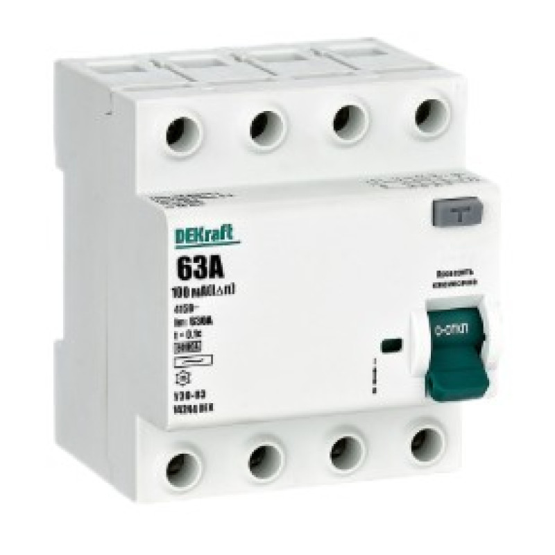 Выключатель дифференциального тока Dekraft УЗО 03-6кА-4P-063А-100-AC