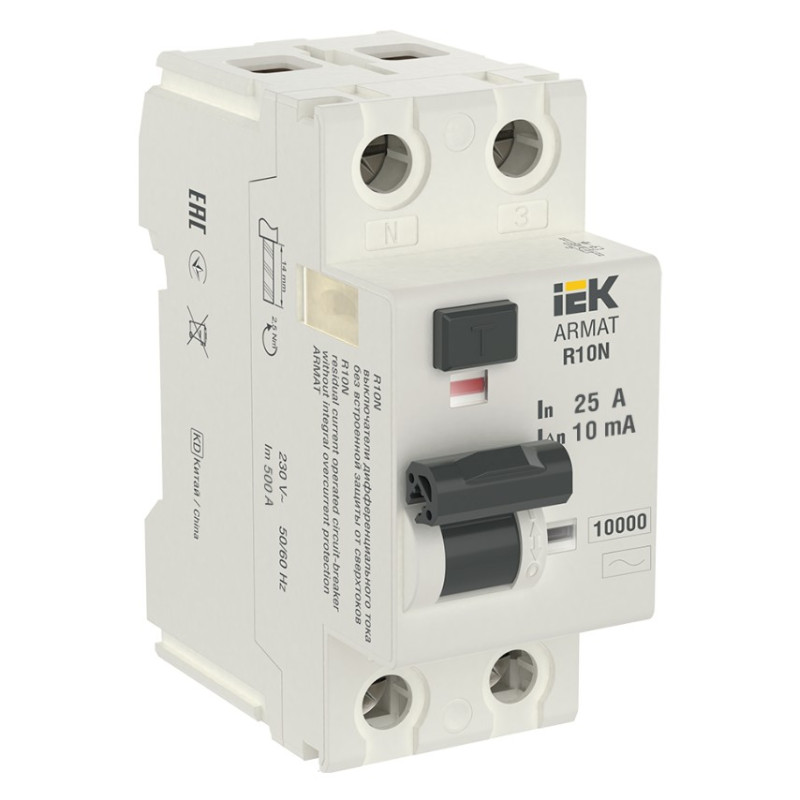 Выключатель дифференциального тока IEK ARMAT R10N 2P 25А 10мА тип AC