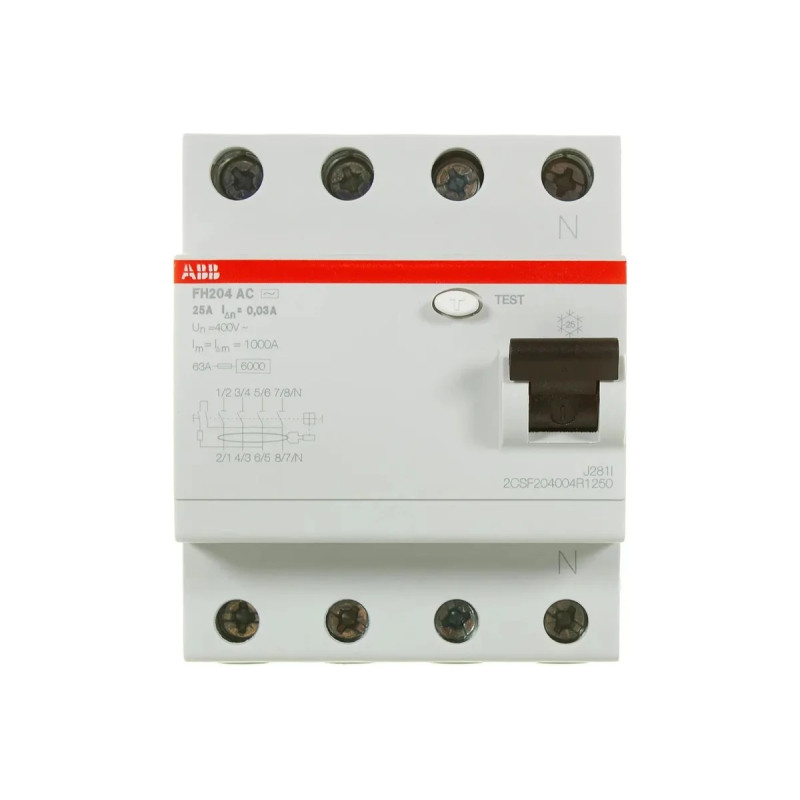 Выключатель дифференциального тока (УЗО) ABB 4п 25А 30мА тип AC FH204
