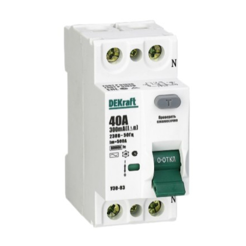 Выключатель дифференциального тока серии УЗО-03 DEKraft. ВДТ применяются для защиты электроустановок от риска возникновения пожаров вследствие утечек тока. Конструкция устройств позволяет эксплуатировать их даже при низкой температуре.