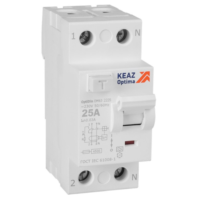 Выключатель дифференциального тока (УЗО) КЭАЗ OptiDin DM63-2225-A-4,5-УХЛ4 без защиты от сверхтоков 2П 25А 30мА A 4,5кА