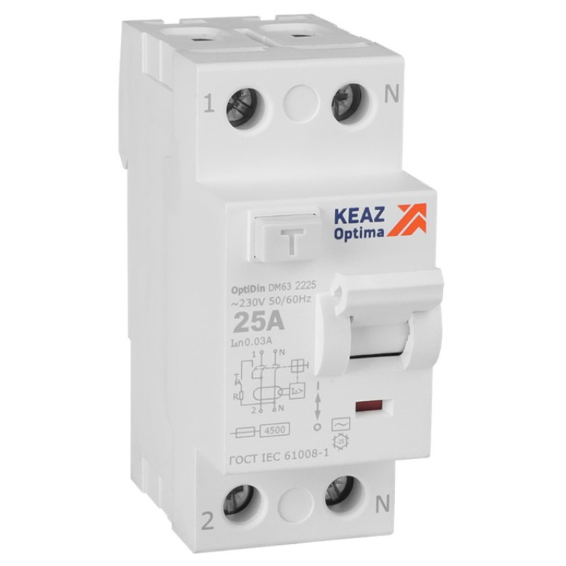 Выключатель дифференциального тока (УЗО) КЭАЗ OptiDin DM63-2225-AC-4,5-УХЛ4 без защиты от сверхтоков 2П 25А 30мА AС 4,5кА