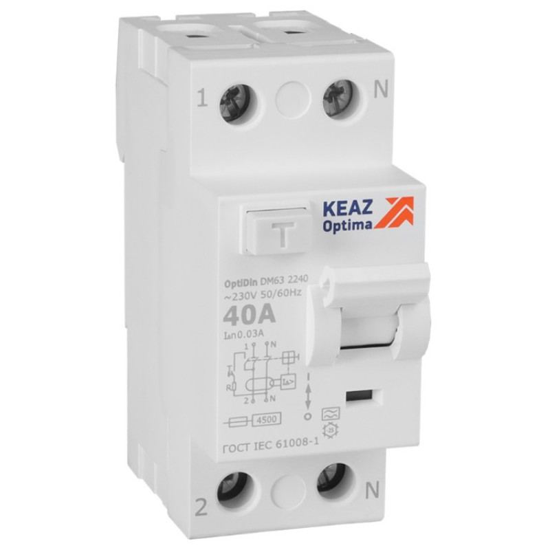 Выключатель дифференциального тока (УЗО) КЭАЗ OptiDin DM63-2240-A-4,5-УХЛ4 без защиты от сверхтоков 2П 40А 30мА A 4,5кА