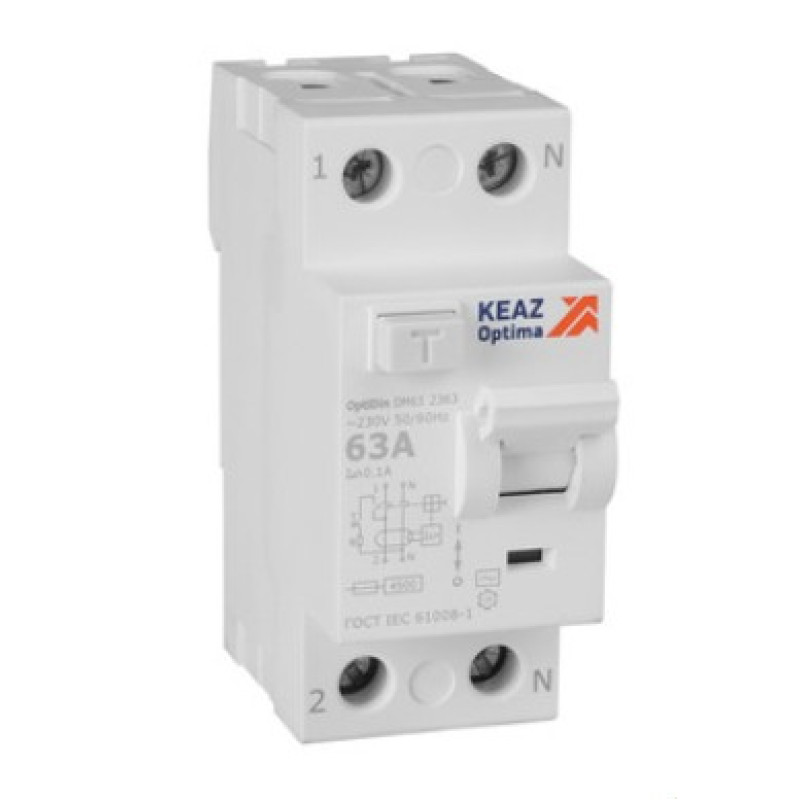Выключатель дифференциального тока (УЗО) КЭАЗ OptiDin DM63-2363-AC-4,5-УХЛ4 без защиты от сверхтоков 2П 63А 100мА AС 4,5кА