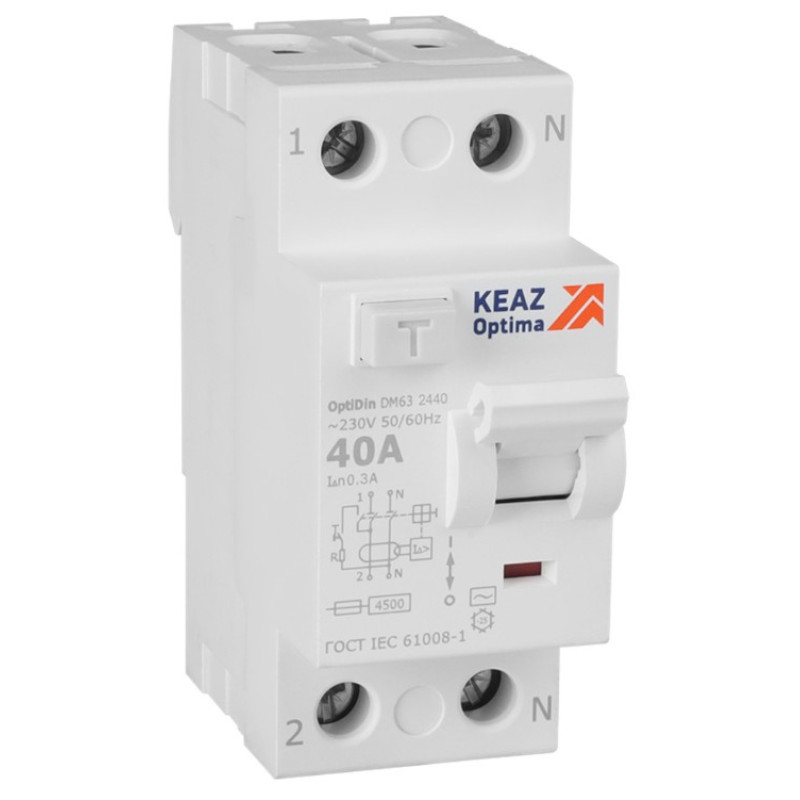 Выключатель дифференциального тока (УЗО) КЭАЗ OptiDin DM63-2440-AC-4,5-УХЛ4 без защиты от сверхтоков 2П 40А 300мА AС 4,5кА
