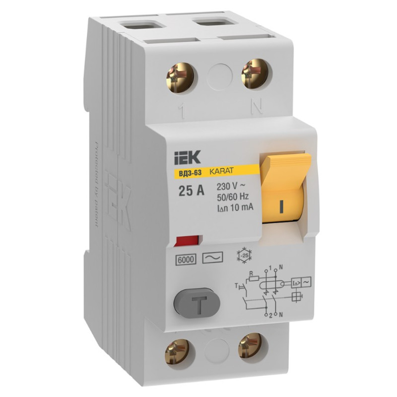 Выключатель дифференциальный (УЗО) IEK KARAT ВД3-63 2P 25А 10мА 6кА тип AC