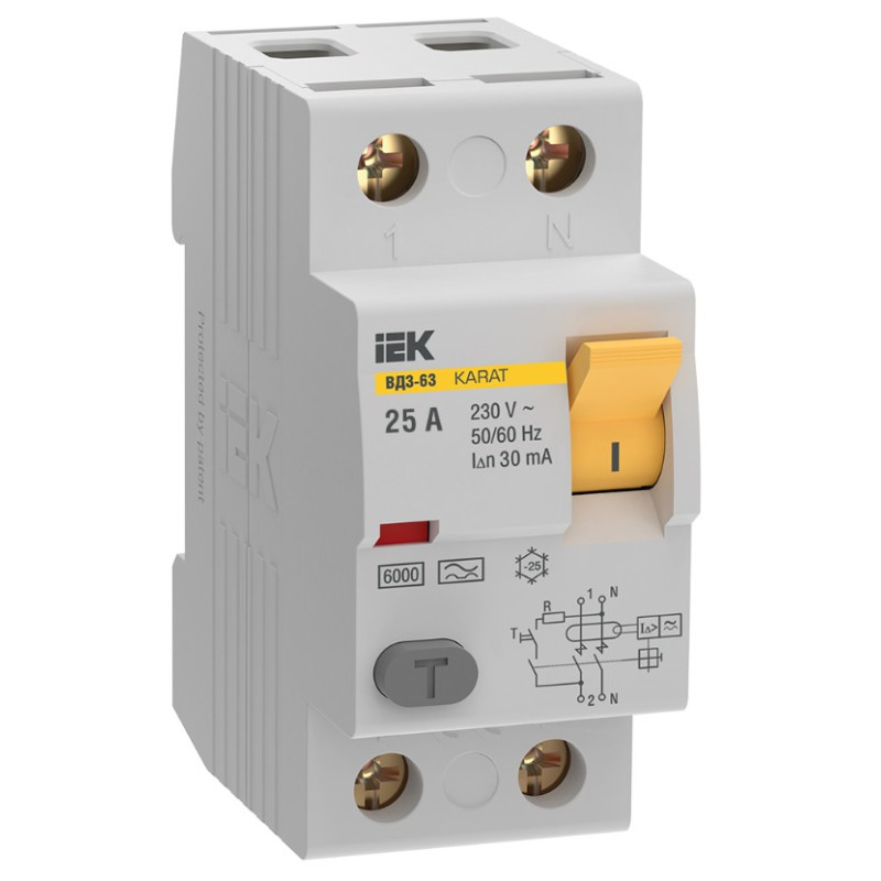 Выключатель дифференциальный (УЗО) IEK KARAT ВД3-63 2P 25А 30мА 6кА тип A