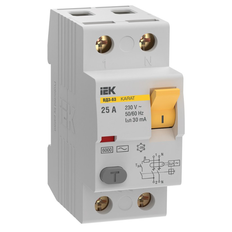 Выключатель дифференциальный (УЗО) IEK KARAT ВД3-63 2P 25А 30мА 6кА тип AC
