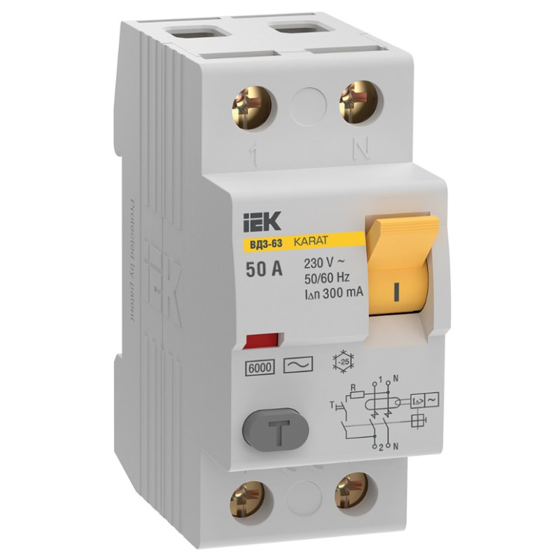 Выключатель дифференциальный (УЗО) IEK KARAT ВД3-63 2P 50А 300мА 6кА тип AC