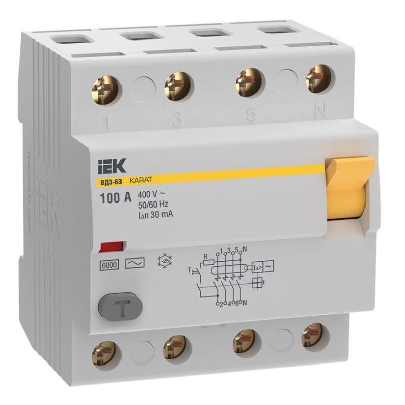 Выключатель дифференциальный (УЗО) IEK KARAT ВД3-63 4P 100А 30мА 6кА тип AC
