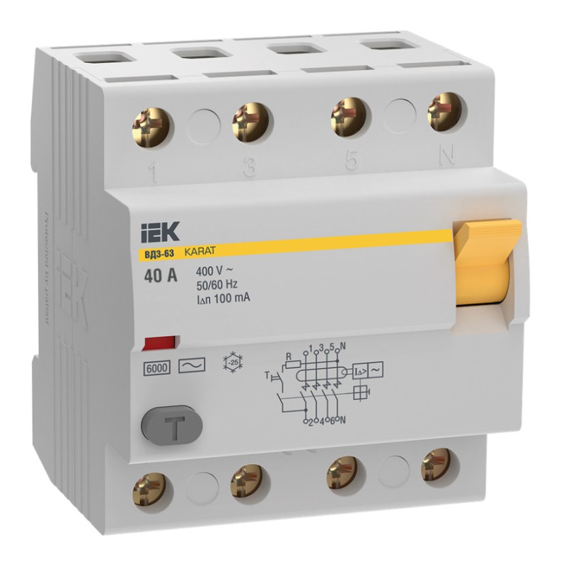 Выключатель дифференциальный (УЗО) IEK KARAT ВД3-63 4P 40А 100мА 6кА тип AC