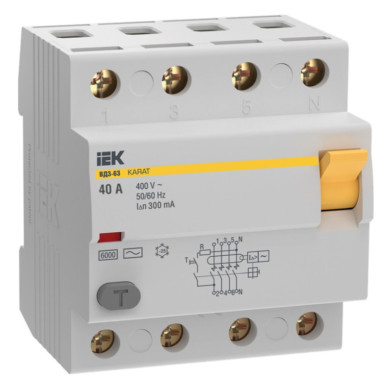 Выключатель дифференциальный (УЗО) IEK KARAT ВД3-63 4P 40А 300мА 6кА тип AC