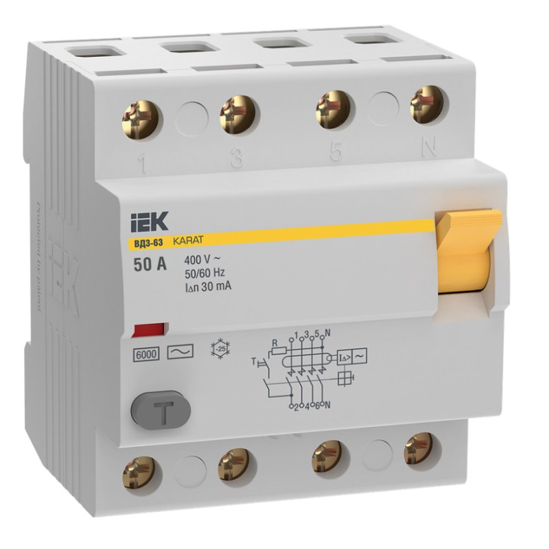 Выключатель дифференциальный (УЗО) IEK KARAT ВД3-63 4P 50А 30мА 6кА тип AC
