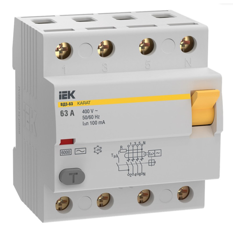 Выключатель дифференциальный (УЗО) IEK KARAT ВД3-63 4P 63А 100мА 6кА тип AC