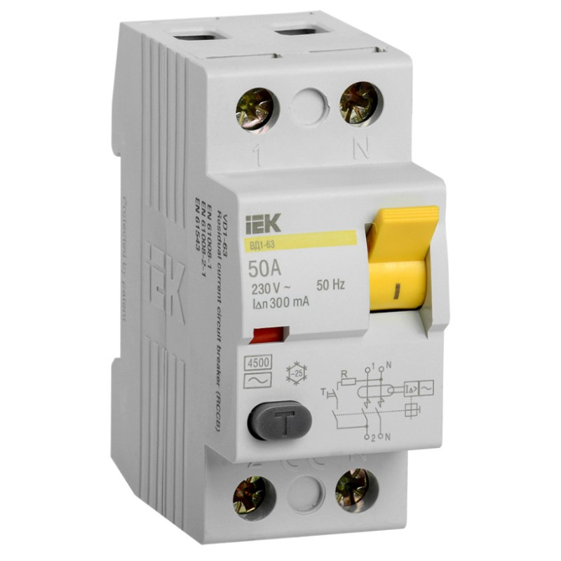 Выключатель дифференциальный (УЗО) IEK ВД1-63 2Р 50А 300мА