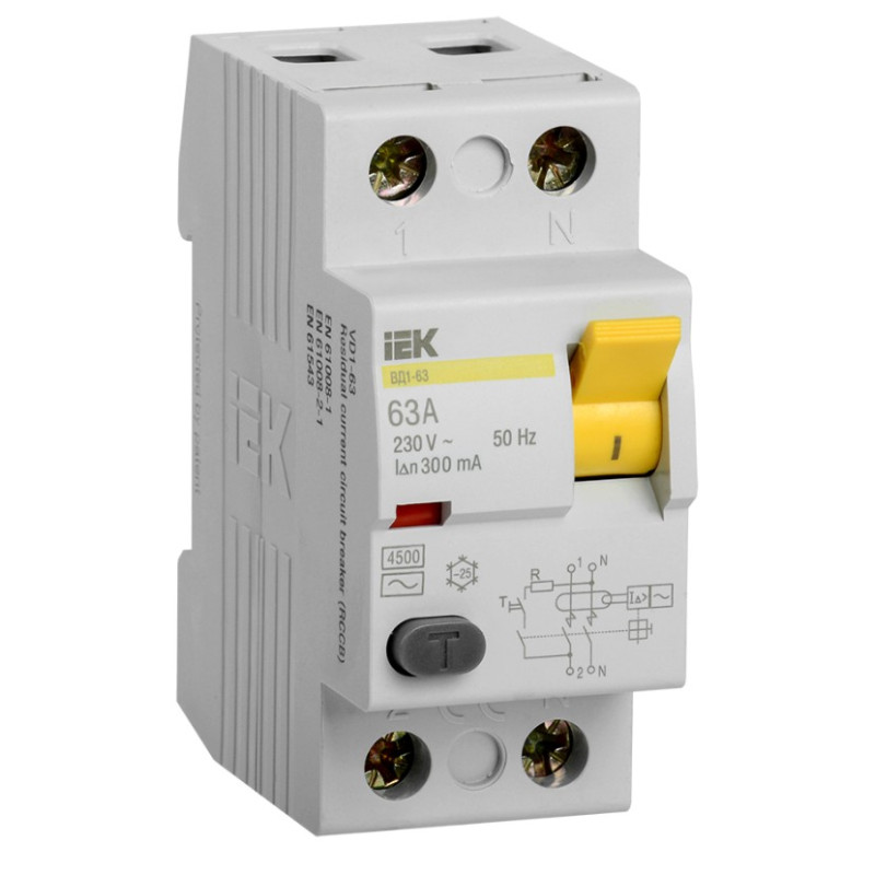 Выключатель дифференциальный (УЗО) IEK ВД1-63 2Р 63А 300мА