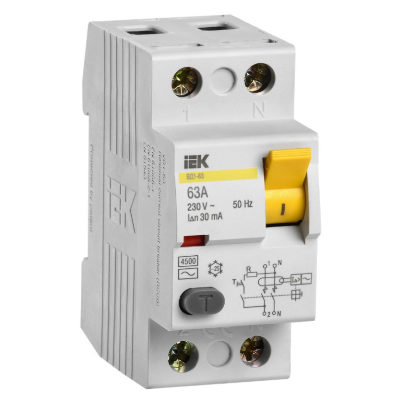 Выключатель дифференциальный (УЗО) IEK ВД1-63 2Р 63А 30мА