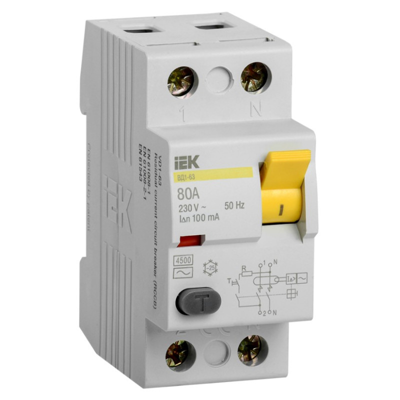 Выключатель дифференциальный (УЗО) IEK ВД1-63 2Р 80А 100мА