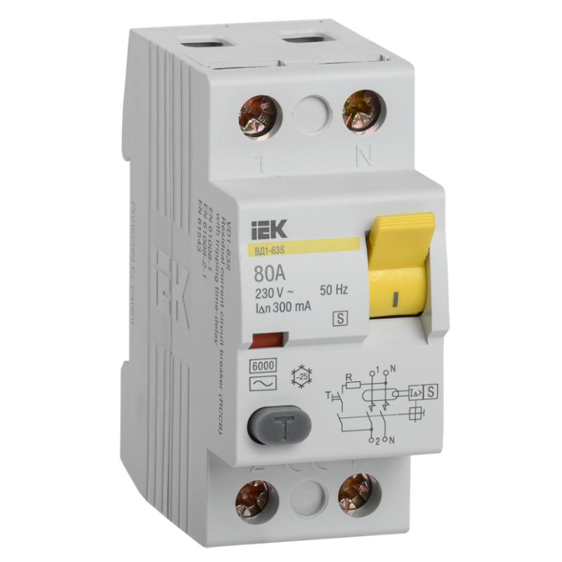 Выключатель дифференциальный (УЗО) IEK ВД1-63S 2Р 80А 300мА