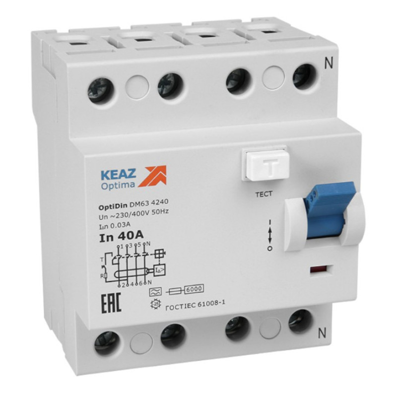 Выключатель дифференциальный (УЗО) КЭАЗ OptiDin DМ63-4263-AС-УХЛ4 4п 63А 30мА тип AC