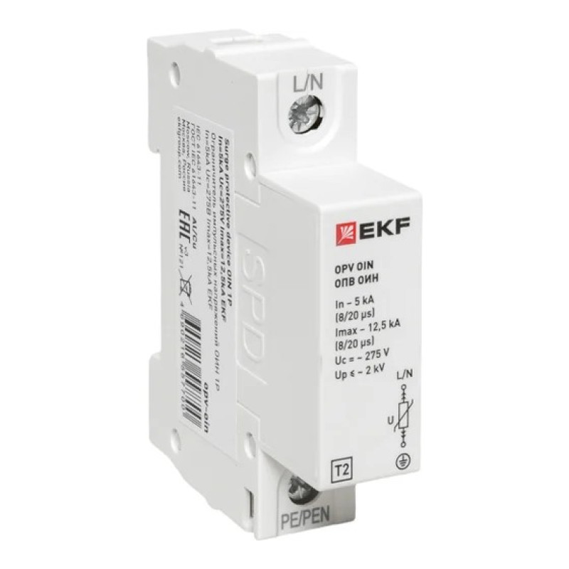 Ограничитель импульсных напряжений EKF ОИН 1Р In=5kA Un=275B Imax=12,5kA opv-oin