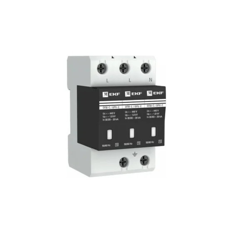 Ограничитель импульсных напряжений EKF ОПВ-C/3P In 20кА 400В (с сигнализацией) (opv-c3)