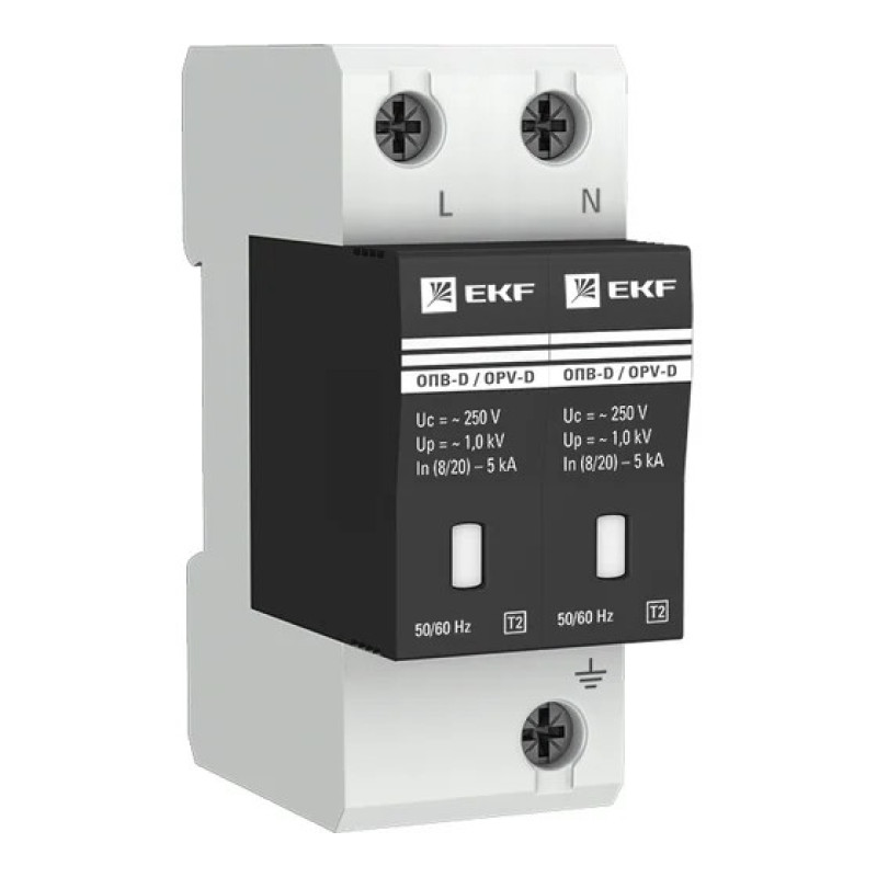 Ограничитель импульсных напряжений EKF ОПВ-D/2P In 5кА 230В (с сигнализацией) (opv-d2)