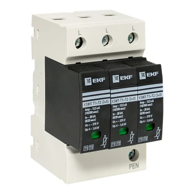 Устройство защиты от импульсных перенапряжений EKF Т1+Т2 — это высокоэффективное решение для защиты трехфазных электрических систем от опасных импульсных перенапряжений, возникающих в результате молний и других электрических разрядов. С максимальным импульсным током Iimp до 12.5 кА и номинальным током In 20 кА, оно обеспечивает надежную защиту для вашего оборудования, что особенно важно для промышленных и коммерческих объектов.