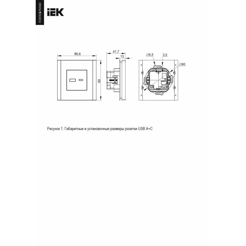 FORTE&PIANO Розетка USB A+C 3,1А FP250 белый IEK
