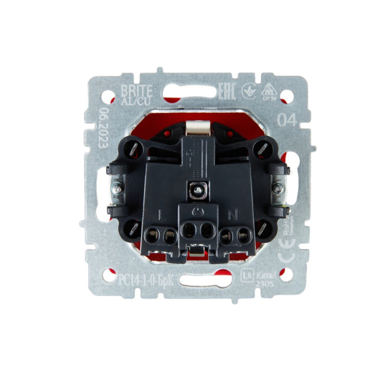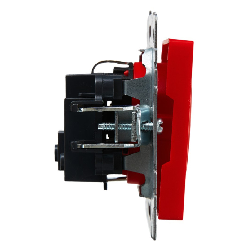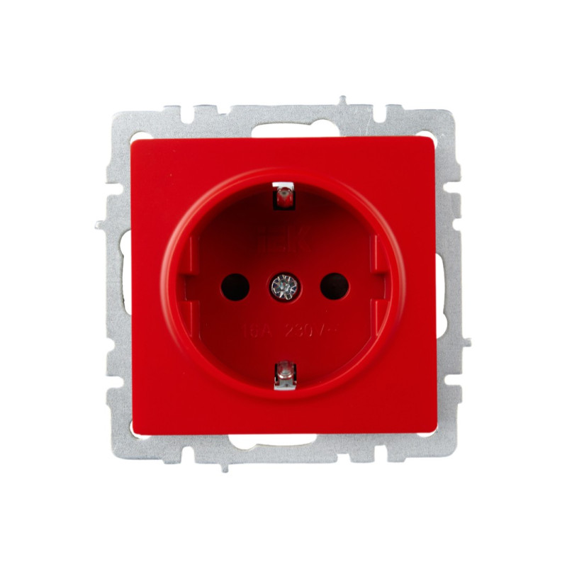 IEK BRITE Красная Розетка 1-местная с заземлением с защитными шторками 16А РС14-1-0-БрК