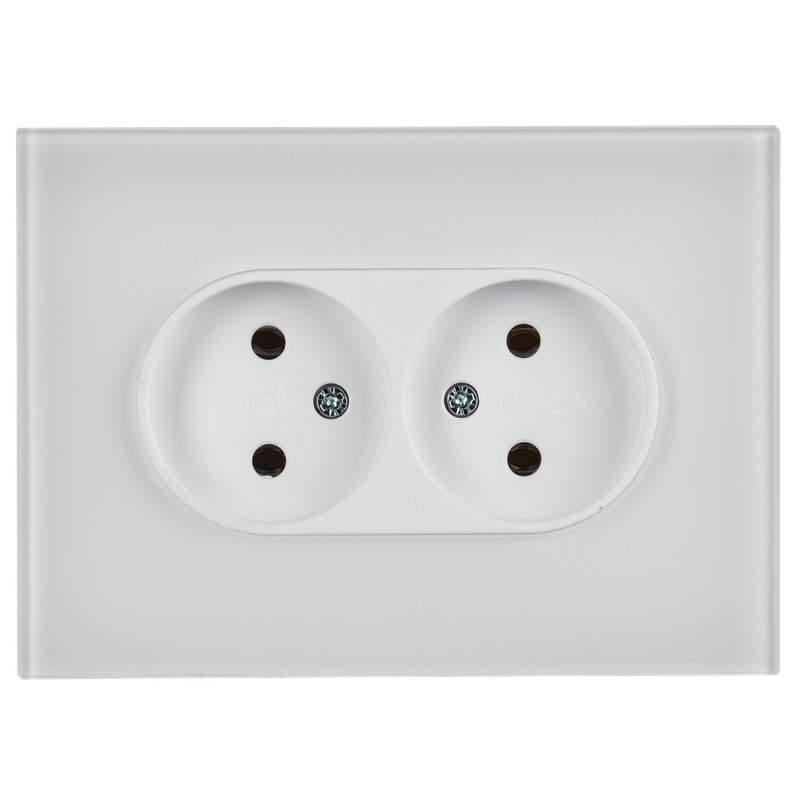 SKANDY Розетка 2-местная без заземления без защитных шторок для плоской вилки 10А SK-R03W стекло арктический белый IEK