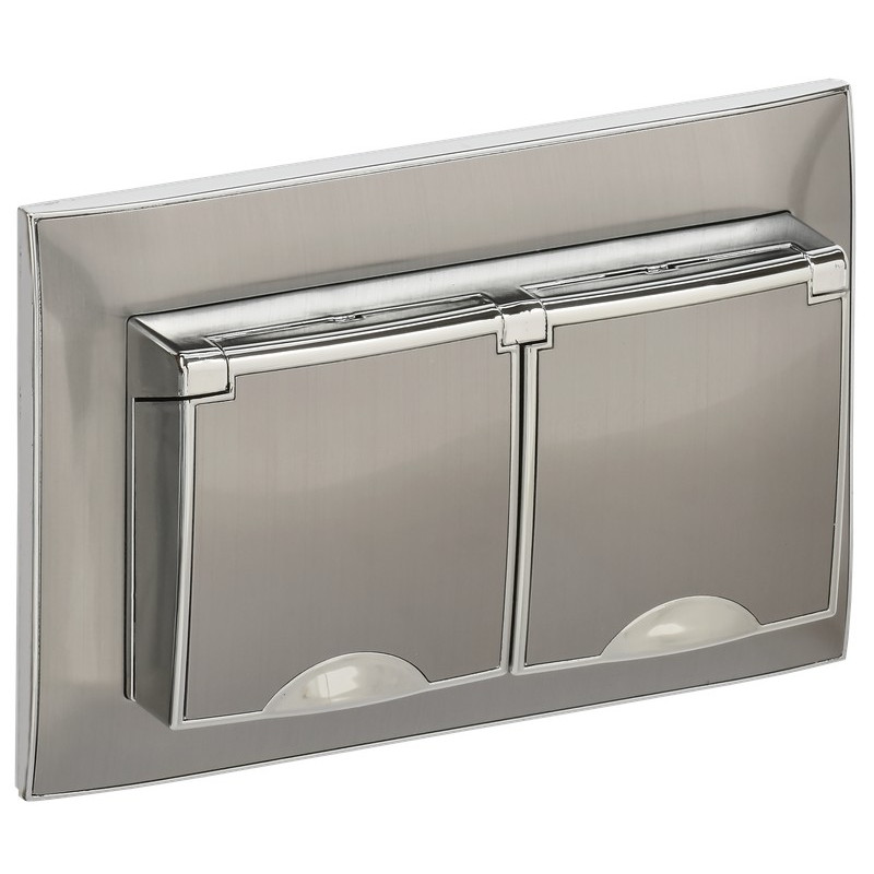 SKANDY Розетка 2-местная и крышкой 16А в сборе IP44 SK-R12N металл никель IEK