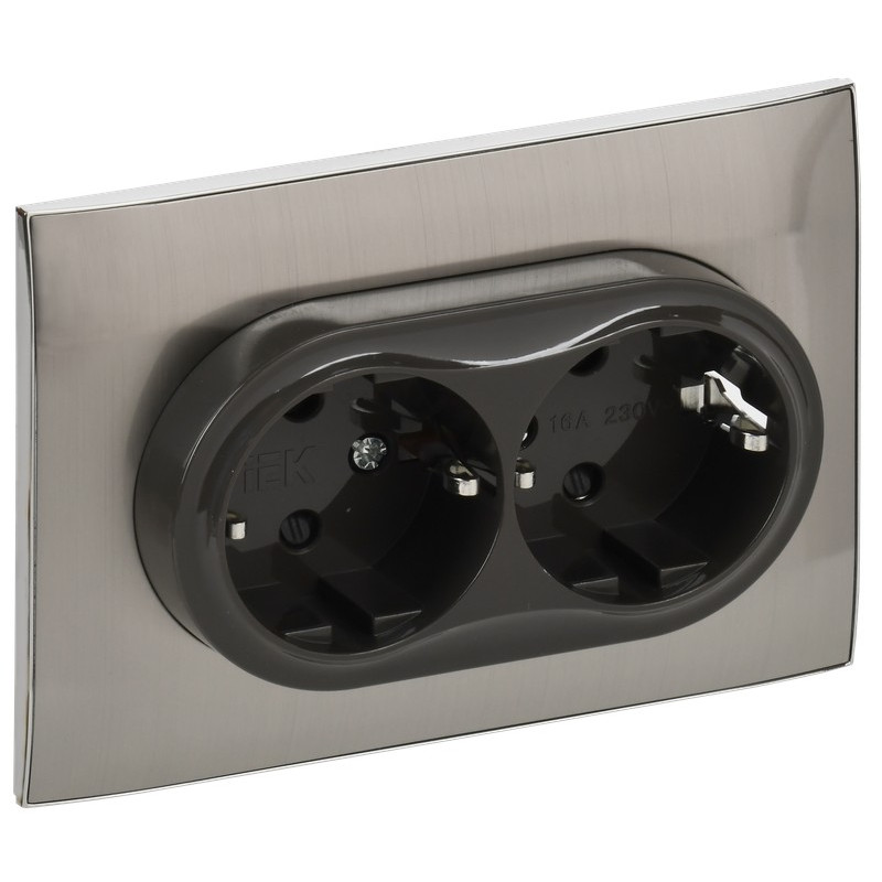 SKANDY Розетка 2-местная с заземлением с защитными шторками 16А в сборе SK-R07N металл никель IEK