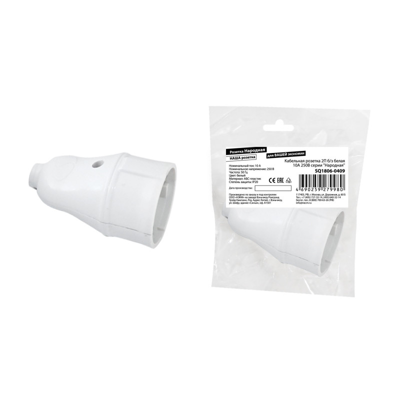 Кабельная розетка TDM ELECTRIC Народная 2П б/з 10А 250B белая