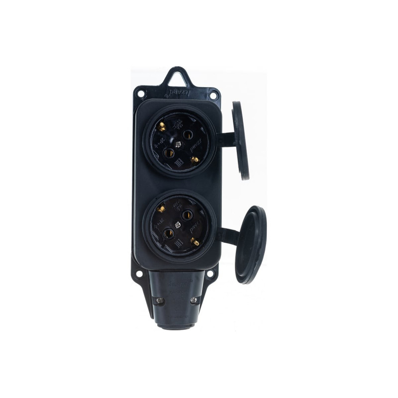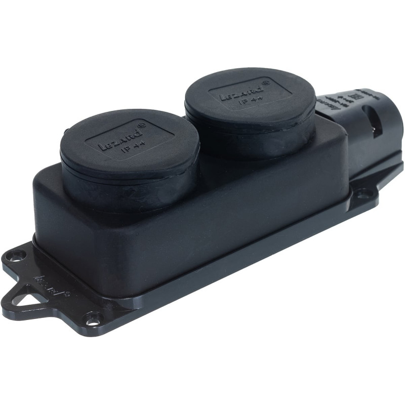 Розетка Lezard наружной установки двойная с заглушкой 2Р+РЕ каучук 106-0400-0110