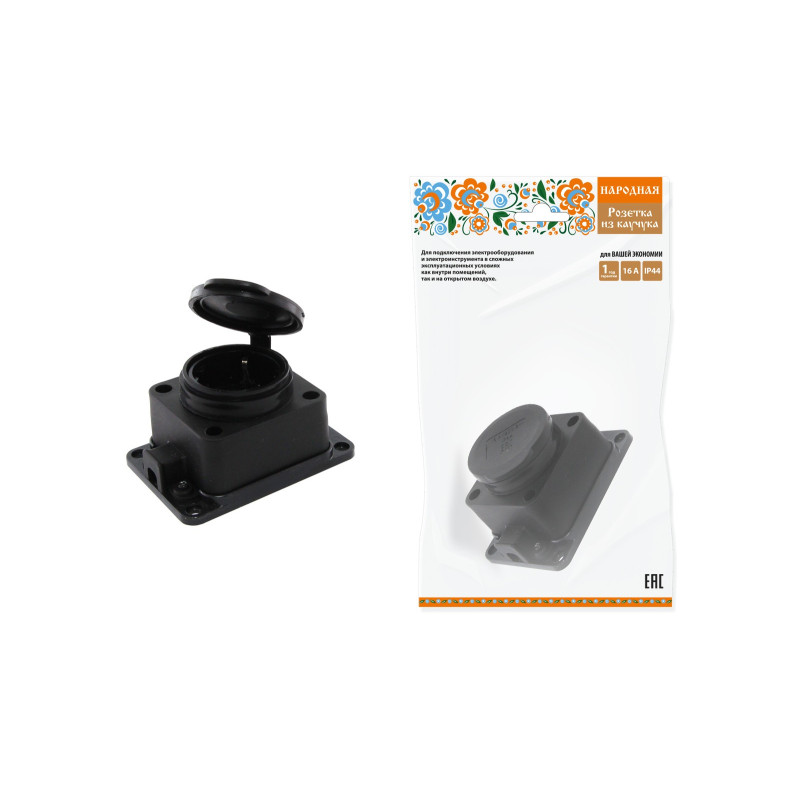 Розетка настенная TDM ELECTRIC Народная с заглушкой 2Р+РЕ 16А 250В IP44 каучук