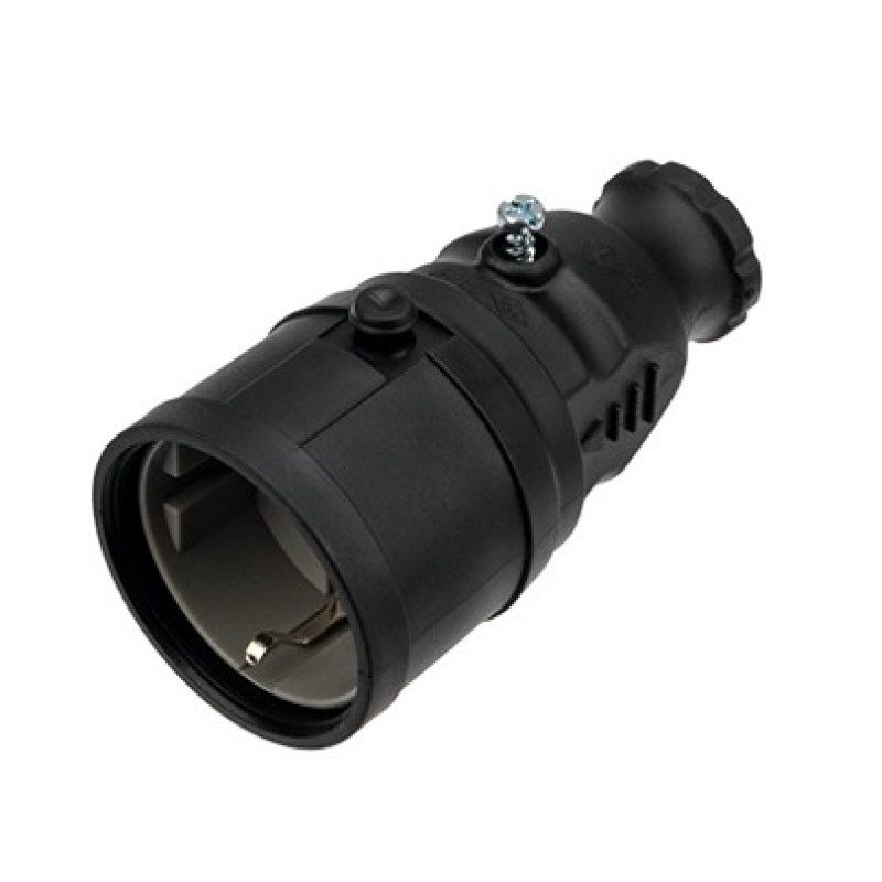 Электрическая влагозащищенная переносная розетка из каучука REXANT предназначена для использования в сложных эксплуатационных условиях с высокой влажностью и широко применяется в быту, производстве и строительстве. Она имеет степень защиты IP20 – без включенной вилки и не защищает от капель и брызг воды. Совместно с включенной влагозащищенной вилкой розетка имеет степень защиты IP44 – защита от капель и брызг воды, попадающих под любым углом, и может быть применена для организации электропитания, в том числе под открытым небом. В дождь под навесом. Не допускается эксплуатация погружением в воду. Она легко монтируется, имеет высокую надежность и долгий срок службы. Розетка не имеет защитной крышки. Для обеспечения безопасности все детали, соприкасающиеся с токоведущими частями, выполнены из огнеупорного материала, устойчивого к температуре до +850 ⁰С.